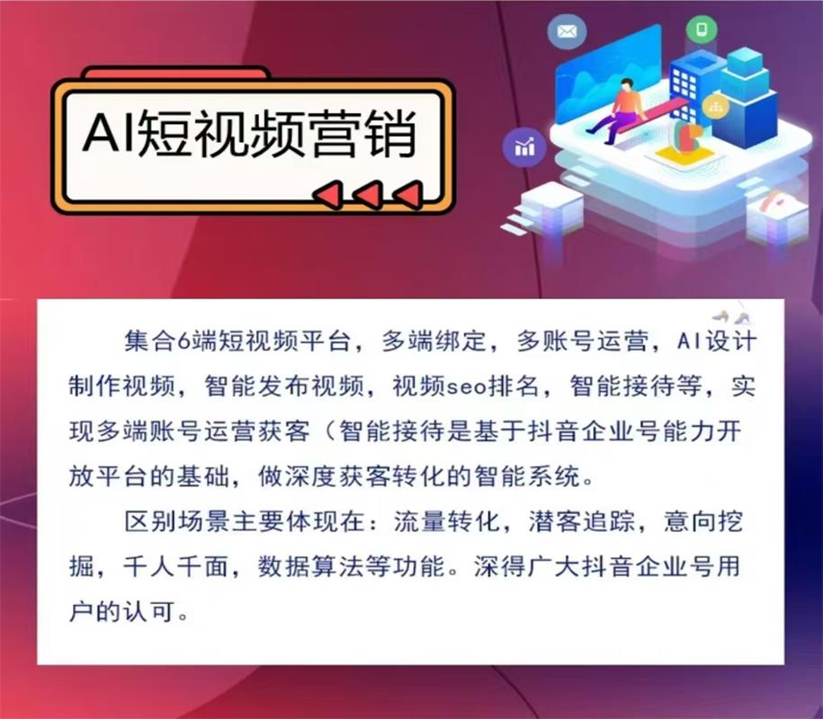 {电话微信:16744000080}矩阵短视频引流获客,通过多平台、多账号布局,实现内容多元化覆盖,极大提升品牌曝光度。其营销优点在于能精准定位目标受众,利用算法推荐机制,提高用户粘性及转化率。业务介绍:我们专注于打造创意矩阵短视频,结合数据分析优化内容策略,有效吸引潜在客户。通过故事化、趣味化视频,深度传达品牌价值,快速构建品牌信任,为合作伙伴带来持续增长的客源与业务机会,助力企业数字化营销升级。